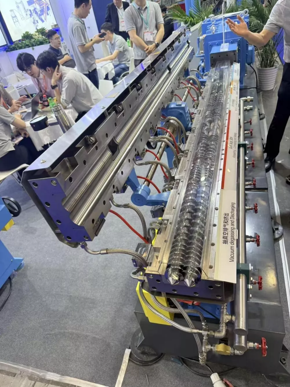 Dirixíndose ás especificidades do mercado de Asia Central, Nanhaiya tamén destacou as súas capacidades de servizo personalizado. Desde pequenos parafusos (Ø15 mm) ata grandes barriles (Ø940 mm), e desde equipos de extrusión estándar ata sistemas de parafusos especializados para PE, compostos madeira-plástico e PVC, a empresa ofrece unha gama completa de servizos, desde o deseño conceptual ata o equipamento completo da liña de produción, adaptado ás necesidades de produción dos clientes. Na exposición, Nanhaiya alcanzou acordos de cooperación preliminares con tres fabricantes locais de plásticos uzbecos. As dúas partes levarán a cabo discusións en profundidade sobre as actualizacións de parafusos e canóns para os seus equipos de produción.